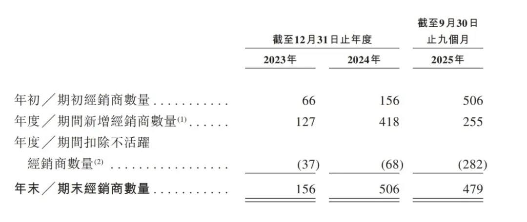 ▌经销商是Suplay最重要的营收来源,凭借经销商的销售渠道及市场资源,该企业得以快速扩大市场覆盖范围,提升产品可及性。招股书显示,该企业在2023年、2024年、2025年前9个月,分别有经销商156名、506名及 479名经销商,贡献收入分别为1.08亿元、2.29亿元、2.1亿元,占同期总收入的74.1%、81.8%、74.3%。