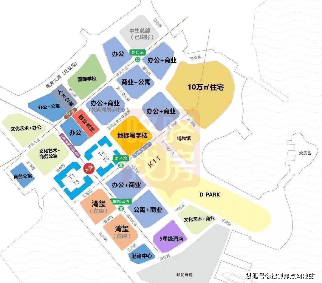 太子湾的商住项目分4期开发,周期长达9年。其中,三期规划有一栋350m的超高层写字楼;四期为住宅,即现在的蛇口港码头所处区域,届时会推倒重建,新的码头搬迁到太子湾母港边。