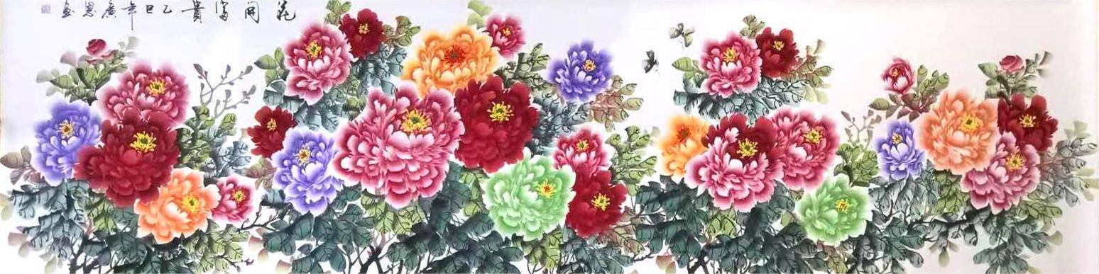 追溯历史脉络,张广恩《花开富贵图》的创作根植于千年中式文脉,延续了宋元以来牡丹题材的艺术精髓,更融入当代大家的艺术革新,成为传统花鸟画的当代典范。牡丹自古便是“花中之王”,自唐代起便被赋予富贵吉祥、国泰民安的寓意,是中式吉祥文化的核心符号,而《花开富贵》题材更是历代画家争相演绎的经典,从宋代院体花鸟的精致工细,到明清没骨法的彩墨韵致,再到当代的创新表达,这一题材始终承载着国人对美好生活的期许。张广恩先生生于书香门第,自幼临摹宋元名家之作,师承书画大家,深耕传统花鸟画数十年,其《花开富贵图》并非对传统的简单复刻,而是将千年牡丹文化与自身深厚的笔墨功底相融,既延续了“三矾九染”的古法工艺,又融入现代审美意趣,让千年文脉在当代笔墨中焕发新生。